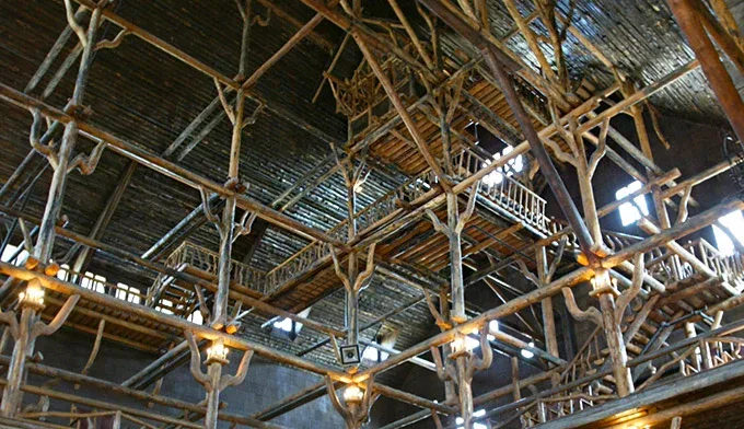 Nearby the geyser it’s named for, the Old Faithful Inn is a stunning work of architecture, but the 85 ft lobby may be hiding something sinister at the peak of it.