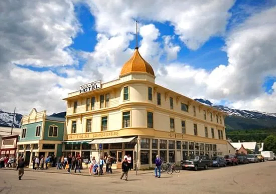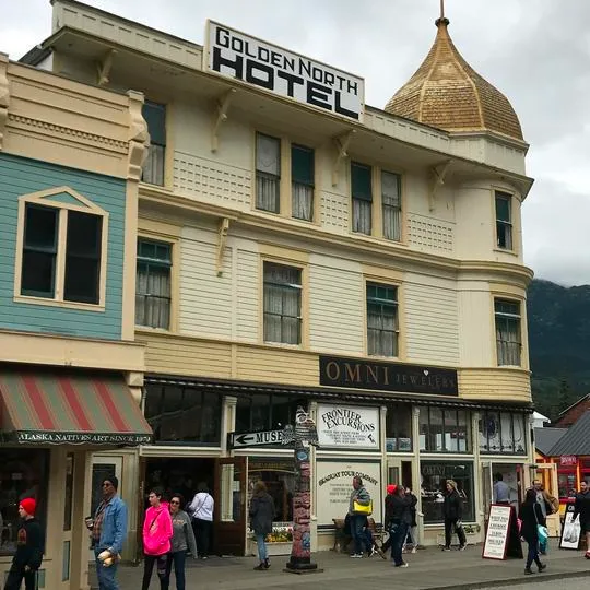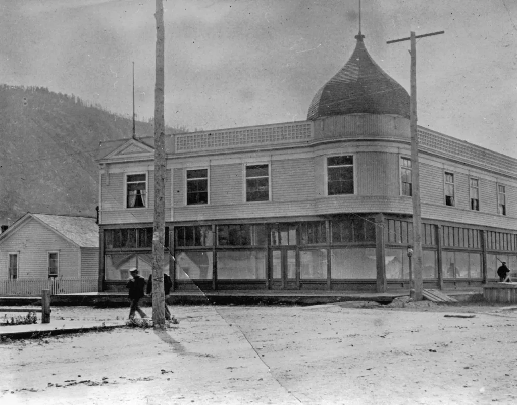 The Golden North hotel was first built in 1898, with a move in location occurring in 1908, where the hotel now sits. When the move was made, another story was added to the structure, and the iconic golden dome was added, giving the hotel a respectable and iconic appearance. It was first advertised as a better alternative to the tents and bunkhouses in the boom town, and it was very loudly proclaimed as a more respectable place than the saloons and bars in town– The Golden North was originally a dry hotel.